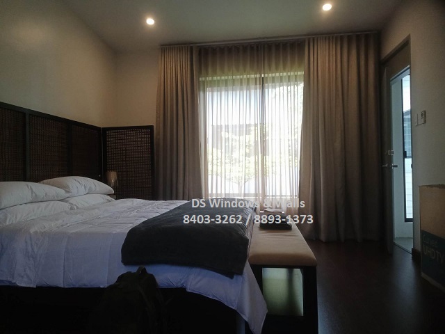 Meanwhile, another installation of cream-colored drapes matched with roller blinds gives a hundred percent privacy for our client. This is a very good combination since the space is a bedroom and should be covered for privacy and security. Additionally, the neutral color of the curtain complemented the other colors in the room.