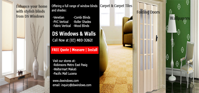 In DS Windows & Walls, we customize all kinds of blinds like Combi Blinds, Roller Blinds, Venetian Blinds, etc. We could do one large window as one panel as long as it is attainable on your window sizes. However, it is more advisable to prefer on splitting it on multiple panels not only for it cozier look but also for easier mechanism control. For more other huge window treatment, call us at (02) 403-3262 / 0916-31-3909 or e-mail us at inquiry@dswindows.com. You can also visit our showrooms located at 4th Level Waltermart Makati City, 3rd Level Robinsons Metro East and 2nd Level Pacific Mall, Lucena City. You can also visit our website at www.dswindows.com. For Calabarzon area, you may contact Mr. Patrick Villapando at (Globe) 0917-583-0214 or (Sun) 0922-592-6111.